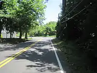 The route forms a concurrency with US 130 on a six-lane divided highway and heads northeast into Burlington. A bypass takes US 130 and CR 543 around the downtown area of Burlington. The road comes to an intersection with the eastern terminus of Route 413, which provides access to the Burlington–Bristol Bridge. Past this intersection, US 130/CR 543 turns east, with the median widening to include businesses. Along this portion of road, there is an intersection with the northern terminus of CR 541. The road narrows to four lanes as it crosses Assicunk Creek, where the median also narrows. The road turns northeast into a residential area, and CR 543 splits from US 130 by heading to the east on two-lane undivided Columbus Road.[1][2]
