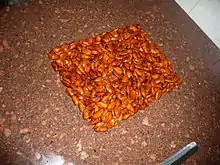 In Campania copeta[4] is produced in the provinces of Avellino, Benevento and Salerno and is considered a white, compact, torrone flavoured with hazelnuts, almonds and pistachios.