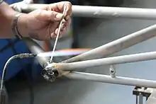 A Cyfac artisan filet brazes a custom steel bicycle frameset.