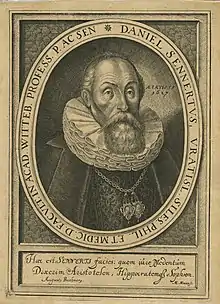 Daniel Sennert (25 November 1572 – 21 July 1637) was a renowned German physician and a prolific academic writer, especially in the field of alchemy or chemistry. He held the position of professor of medicine at the University of Wittenberg for many years.