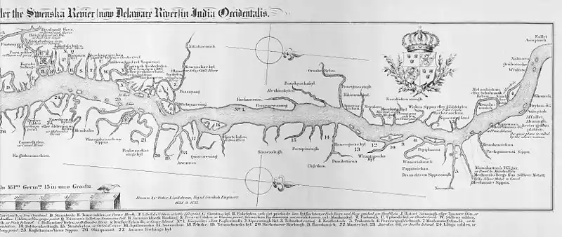A 1655 Swedish nautical chart showing part of the Delaware River when the river was part of the Swedish colony New Sweden