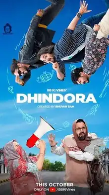 Dhindora (Ḍhiṇḍhorā) is a 2021 Indian comedy drama web series created by Bhuvan Bam and directed by Himank Gaur.[1] Bhuvan Bam plays ten multiple characters,[2] and the series also stars Gayatri Bhardwaj and Jeeveshu Ahluwalia.[3][4] Bam claimed that by July 2022, the show had more than 500 million views.[5][6] The soundtrack is composed by Bhuvan Bam and Sneha Khanwalkar.