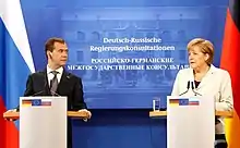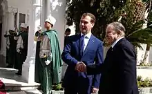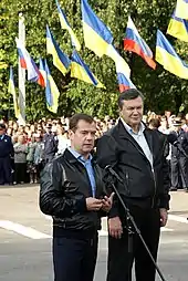 To some analysts, Medvedev's presidency seemed to promise positive changes both at home and in ties with the West, signaling "the possibility of a new, more liberal period in Russian politics". However by the 2020s he had adopted increasingly authoritarian and anti-West positions.[5] Observers both domestically and internationally suggested that the break with past rhetoric was Medvedev attempting to change his public image as a moderate subordinate to Putin.[6]