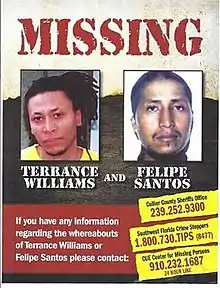 - ↑ "Missing - Terrance Williams & Felipe Santos". Collier County sheriff's office. Retrieved 26 February 2014.
