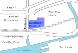 - ↑ Distillery Site Plan Archived November 25, 2011, at the Wayback Machine The Historic Distillery District