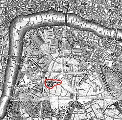 "John Rocque's Map of London – 1746". On-line old maps of Great Britain. Ancestry.com. Archived from the original on 17 August 2013. Retrieved 29 June 2013. In particular sheet D3 Archived 22 December 2016 at the Wayback Machine - ↑ Alderman Crosby (20 September 1787). "Tuesday the Lord Mayor, Mr. Alderman Crosby, and Sir William Plomer, met at St. Margaret's Hill". The Times (854): 3.