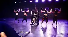 Jessie J, middle, on set filming the original version of the music video for "Domino".[30]