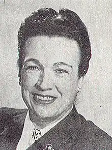 The same year, she married fellow reporter John Lewis, who she had met while covering the Mary Aster trial.[4] The couple bought The Burlington Daily Enterprise in New Jersey, although the paper ultimately failed. They lived in Pound Ridge, New York, and although in 1940, Roe began working as the assistant women's editor for King Features Syndicate in Manhattan, she continued to commute.[1][4] In 1941, she became a syndicated columnist and the women's editor for the Associated Press (AP), a position that she held for nineteen years. The same year, she gave birth to her second daughter, Judy.[1][2][3] She focused on fashion writing, particularly comparing the fashions of post-World War II to those pre-war.[1] Roe established a network of other fashion editors and met many well-known fashion designers.[1][5] She was particularly close to milliner Lilly Daché, including editing her books Talking Through My Hats and Glamour Book.[1][6] She also covered women's clubs and their work; one 1952 article focused on an attempt to resolve transit issues.[7]