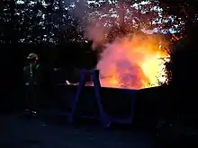 The term "dumpster fire" derives from fires that start in large trash bins. These bins are often termed "dumpsters" after the Dempster Dumpster brand of trash bin in the United States, which eventually came to be colloquialized as "dumpster".[1]