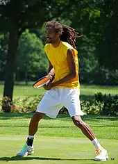 Dustin Brown (born 8 December 1984)[1] is a German-Jamaican professional tennis player. He rose to fame after beating Rafael Nadal in the 2014 Halle Open and Wimbledon 2015, and is known for his technique, speed, and entertaining playing style, often entertaining the crowd with trick shots. He is also known as "Dreddy" due to his distinctive long dreadlocked hair.