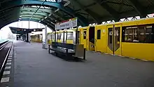 Eberswalder Straße is an overground station located on the U2 line of the Berlin U-Bahn network. It is located in the Prenzlauer Berg area of the city on Schönhauser Allee, a major street running from the city centre north towards Pankow.