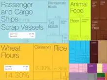 Graphical depiction of St Vincent's product exports in 28 color-coded categories.