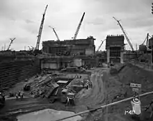 In the early 1950s, the federal government built the Savannah River Plant (SRP) to create materials for hydrogen bombs. The plant, located on 306 miles of land, was the largest construction project in the history of the country at the time.[138] During construction, up to 40,000 workers were employed by the SRP resulting in increased wages throughout the region.[139] Civil rights groups fought for equal employment opportunities at the plant. In the 1950s, the vast majority of African Americans in the state worked in agriculture because the textile industry was dominated by whites.[140] The jobs the SRP created in western South Carolina enabled many of that area's white citizens to enter the middle class.[141] But, African Americans whom made up 20% of the plant's workforce almost all worked as common day laborers.[142][143] In the 1990s, the plant was renamed the Savannah River Site (SRS). According to the SRS it is now an "industrial complex responsible for disposition of nuclear materials, waste management, environmental cleanup and environmental stewardship" with an annual budget of $2 billion and a workforce of almost 11,000.[144]