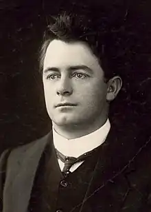 Russell was involved with the labour movement from 1899, becoming a delegate from the Printers' Union to the Melbourne Trades Hall.[1] He developed his public-speaking skills through his participation in literary and debating societies.[2]