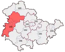 Eisenach – Wartburgkreis – Unstrut-Hainich-Kreis is an electoral constituency (German: Wahlkreis) represented in the Bundestag. It elects one member via first-past-the-post voting. Under the current constituency numbering system, it is designated as constituency 190. It is located in western Thuringia, comprising the city of Eisenach and the districts of Wartburgkreis and Unstrut-Hainich-Kreis.[1]