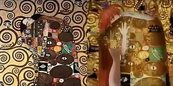 The opening and ending sequences feature artistic drawings of the principal characters. These characters are drawn in a style based on Gustav Klimt's paintings, including The Kiss, Adele Bloch-Bauer I, and others with similar imitating poses, colors, and patterns.[12] In promotional art as well as in the series itself, characters make use of a famous El Greco hand symbol of outstretched fingers with the middle and ring fingers connected. The song Elfenlied ("Elf Song") appears in the manga[13] and is credited to the composer Hugo Wolf. A poem by Eduard Mörike is the basis for Wolf's version. It is taught to Nyu by the manga-only protagonist Nozomi. In the manga, the Diclonius are kept in a grotto called the Lebensborn Cave, a reference to the Nazi eugenics program.[14]