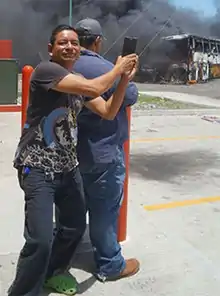 The next day, on June 19, 2016, violence between the police and protesters erupted, and, as a result, eight protesters were killed, a bus was burned, more than 100 police and protesters were injured, and over 20 people were arrested.[2][8][11] Ramos was photographed multiple times posing in front of a burning bus.[2][6]