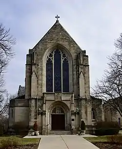Emmanuel Episcopal Church is a historic Episcopal church at 203 S. Kensington Avenue in La Grange, Illinois. La Grange's Episcopal congregation formed in 1872 and built its first church in 1878. The current church building was built in 1925–26 to replace the original church after it burned down in 1924. Architect John Neal Tilton, Jr., who was also a member of the congregation, gave the new church a Gothic Revival design inspired by cathedral architecture; the design bucked the contemporary tradition of giving suburban churches simple designs. The church's design includes an ashlar limestone exterior, lancet windows with stone surrounds, a parapet with a cross above the entrance, and a large entrance gable flanked by buttresses. The church's stained glass windows, which were installed over the course of a multi-decade program, were designed by multiple artists and feature scenes of everyday American life.[2]