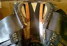 - Girth Buckle guard: the billets are threaded through the Girth buckle guard, which protects the saddle flap from getting worn away by the buckles of the girth. These are not always present on saddles with long billets, which are intended to be buckled below the saddle flap.