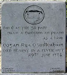 Eoghan Rua Ó Súilleabháin (1748  29 June 1784), anglicized as Owen Roe O'Sullivan ("Red Owen"), was an Irish poet. He is known as one of the last great Gaelic poets. A recent anthology of Irish-language poetry speaks of his "extremely musical" poems full of "astonishing technical virtuosity", and also notes that "Eoghan Rua is still spoken of and quoted in Irish-speaking districts in Munster as one of the great wits and playboys of the past."[1]