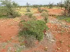 This eremophila occurs between Coburn Station and Gascoyne Junction[3] in the Carnarvon and Gascoyne biogeographic regions[6] where it grows in red sandy soils, on dunes and near shallow lakes.[2][6][7]
