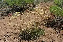 This is a dioecious mat-forming sub-shrub which grows on sandy mountain soils. It forms patches of wavy-edged pale green leaves and has erect, branching inflorescences reaching heights of anywhere from 10 to 40 centimeters.