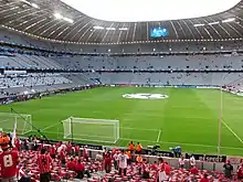 In 1972–73, Bayern reached the last eight before losing to holders Ajax, who would go on to retain their title.[12] However, the Bundesliga was successfully defended, and another opportunity in the European Cup beckoned in 1973–74. That campaign was almost a very short one, with a penalty shootout required to overcome Swedish semi-professionals Åtvidaberg in the first round (Bayern were sufficiently impressed with the opposition's Conny Torstensson to sign him a short time later).[21][22] Subsequent rounds behind the Iron Curtain, including a narrow hard-fought 7–6 victory over East Germans Dynamo Dresden for the 'true German Championship',[23][24][25][26] brought the club to their first Champions Cup final, to be staged at Heysel Stadium in Brussels, the same venue as West Germany's Euro victory. The opposition, Atlético Madrid, were known for their defensive strength, and the 90 minutes ended goalless. When Atlético scored with only five minutes of extra time remaining it seemed like Bayern's dream was over, but a Schwarzenbeck goal with a shot from 30 yards in the last minute meant the tie was saved and a replay was needed.[12][27][28] 48 hours later, Bayern produced a superior performance, Hoeneß and Müller each scoring twice, and the 4–0 result brought European football's biggest prize to Bavaria, and indeed to Germany, for the first time.[12][10][27][28]