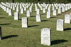 In 1861 a section in the eastern portion of the cemetery was set aside for burials related to the American Civil War; this section contains 442 known graves of Confederate Army soldiers and eight of Union Army soldiers.[2][3] Also buried is Confederate Congressman Hugh French Thomason (1826–1893).