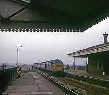 When the railways were nationalised in 1948, Filton Junction came under the aegis of the Western Region of British Railways.[11] Following the publication of the Beeching Report, the Henbury Line was closed to passengers in 1964, and service levels began to decline. The line between Pilning and Severn Beach was also closed, putting an end to loop services. The goods yard was closed in July 1965, and the station's name reverted to Filton from 6 May 1968. Much of the station buildings were demolished in 1976, as were the platforms serving Badminton Line trains, as no trains on this line called at Filton anymore. The remaining two platforms had small replacement shelters built on them.[2]