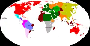 At the time the book begins in 2415, the Yukon Confederacy controls North America, Australasia, Britain, Iceland and Greenland. A Turkish empire controls the Muslim world, including Europe, Central Asia, Afghanistan and Pakistan; since it is based at Tashkent, "Turkish" here may be used in the generic sense. A totalitarian (and apparently still Communist) China rules virtually all of East Asia, including Siberia, Korea, and Japan. India, Ethiopia, the Philippines and a much-truncated Russia (called "Pan-Slavia" or the "Slavic Remnant") remain independent and allied with the Yukons, while Africa is divided among numerous feuding states variously supported by the Yukons, the Turks and the Chinese. Finally, Latin America is dominated by a collection of banana republics; among others, Judson lists a bandit-plagued Mexico, Brazil (since the Muslim conquest of Europe, the home of the Pope), Greater Colombia, and the Argentine Empire.