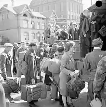 The so-called Displaced persons (DP) played a key role in the history of the German refugee policy post-1945. Most of them were deported to Germany, mainly as forced laborers, during the Second World War. Freed prisoners of war, Eastern Europeans who came to Germany voluntarily after the start of the war and people who had fled from the Soviet Army were considered within a broad definition of DPs.[1] DPs were supposed, and also mostly wanted, to be repatriated into their country of origin. Citizens of the Soviet Union were however repatriated against their will. Polish and Baltic people, as well as the forced laborers from the areas in Belarus and Ukraine who had lived on Polish national territory before the war, had the choice either to go back to their homeland, to emigrate to another country or to stay in Germany.[2] All over Eastern Europe, Stalinist dictatorships were established; that is why many of the Displaced Persons", especially those who were suspected of having collaborated with the Nazi occupiers, would not leave Germany: they feared severe penalties in their country of origin. For instance, the former Latvian general Rudolfs Bangerskis, who later became a general of the Waffen-SS, died in 1958 in exile in Oldenburg. Displaced Persons are called "homeless foreigners" in German federal law, and their legal position, based on the "Law on the Legal Status of Aliens in the federal territory" of 25 April 1951,[3] is similar to the legal position of people with refugee status.