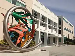 The Charles E. Schmidt College of Medicine on Florida Atlantic University's Boca Raton campus. The sculpture is "Orgonelle," designed by Rob Fisher.[52]