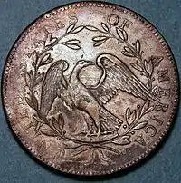 Beginning in the 1780s, a large number of prominent Americans called for the establishment of a central mint to supply the United States with official coinage; all such proposals failed due in large part to lack of funds and opposition from individuals and groups who preferred that coins be struck by the individual states.[1] Since there were no federal coins issued, the needs of the states were fulfilled by a variety of domestic and foreign coins and tokens, including Spanish peso, eight-real coins (popularly known as Spanish dollars or pieces of eight).[1]
