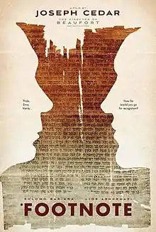 Footnote (Hebrew: הערת שוליים, translit. He'arat Shulayim) is a 2011 Israeli drama film written and directed by Joseph Cedar, starring Shlomo Bar Aba and Lior Ashkenazi.[2] The plot revolves around the troubled relationship between a father and son who teach at the Talmud department of the Hebrew University of Jerusalem.