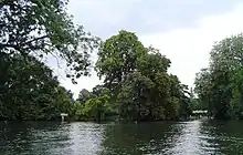 The island is one of the largest on the non-tidal river Thames with 50 acres (20 ha) of woodland.[1] It can be reached by footbridge from Cookham. Most of the land on Formosa Island is owned by the John Lewis Partnership, and forms part of the Odney Club country club owned by the company. Formosa Island is between two of the four channels in the river at Cookham, the one closest to Cookham was once the mill stream to a paper mill at Cookham. The one on the other side leads to Odney Weir. The adjacent Mill Island has the lock channel on the other side. Beyond the lock channel is Sashes Island and the channel furthest from Cookham is Hedsor Water, the original navigation channel, which was blocked by the weir in 1830 when the lock was opened, causing loss of trade to then owner Lord Boston.