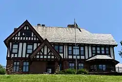 The Foster/Bell House is an historic building located in Ottumwa, Iowa, United States. The original house on the property was the home of Judge H.B. Hendershott built in 1862. He sold the property to Thomas D. Foster in early 1890s. He was the chairman and general manager of the meat packing firm John Morrell & Company from 1893 to 1915. Foster hired architect Ernest Koch to design the present residence. It was originally a frame and stone house in the Neoclassical style that was completed in 1893.[2] The house passed to Foster's daughter Ellen Foster Bell who hired the Des Moines architectural firm of Kraetsch and Kraetsch. They redesigned the exterior to its present Tudor Revival style in 1923. The architectural firm of Tinsley, McBroom & Higgins made significant changes to the interior in 1929. It features Sioux Falls red granite on the main floor.