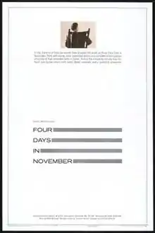 - ↑ "NY Times: Four Days in November". Movies & TV Dept. The New York Times. Baseline & All Movie Guide. 2011. Archived from the original on May 21, 2011. Retrieved November 9, 2008.