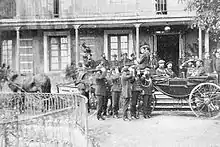 The key Melgar's task was to run massive correspondence of the claimant.[83] He also accompanied the king in voyages across Europe[84] and the world,[85] and participated in political gatherings.[86] Granted significant autonomy, after the Integrist breakup in 1888 Melgar became key link in the party command chain, described as Carlos VII – Melgar – Cerralbo.[87] Exact scale of his impact on party politics is not clear. Though Carlos VII sought his advice on many issues,[88] it is unlikely that Melgar exercised major influence on the charismatic Carlist king; students underline rather his genuine devotion to the monarch.[89] It is because of the autonomy he enjoyed that some refer to him as one of key Carlist leaders of the late 19th century, member of the inner-circle ruling the movement.[90]