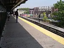 The Franklin Avenue station on the BMT Franklin Avenue Line has one track and one side platform. It is the northern terminal of the Franklin Avenue Shuttle.