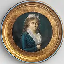 He was born in c. 1760 and, according some sources,[2] was a pupil of Johann Heinrich Schröder (1757 - 1812) and debuted as pastellist in the “Salon (Paris) de la Correspondance” of the 1780 with the portraits of Charles Juste de Beauvau, Prince of Craon and Comte Mimerel. His first miniatures can be dated to the mid-80s of the 18th century. He was active in Paris until 1804 where he was the court painter of Louis Joseph, Prince of Condé and lived in rue Neuve des Petits Champs, 414 rue Neuve Saint Marc, 549 rue de Grammont, 27 place des Victoires. In the following years he worked in Saint Petersburg. There, as most sources state, he stayed until 1818 and in 1813 he was granted membership of Saint Petersburg Imperial Academy of Arts.[3] In 1819–1820, he was exhibiting in different London locations but above all in Royal Academy. In England he lived in London, 22 Vine Street and then in 9 Panton street near Leicester Square an area of the city known as an entertainment venue preferred by foreigners and where the great portrait painter Joshua Reynolds lived until 1792. Probably he died in c. 1822. During his stay in Saint Petersburg, very appreciated by the court of Alexander I of Russia, the artist taught at the Imperial Academy of Arts and painted a great number of portraits of royalties and aristocrats. He also portrayed French expatriates living in Russia's capital. His works of this period can be viewed in Moscow Pushkin Museum and Tretyakov Gallery, in Saint Petersburg Hermitage Museum and other Russian museum collections.[4] Frederic Dubois not only painted in miniature, as can be seen in the oil portraits of two sisters from the Poilevé de la Guerinais Breton family in Rennes[5] or in the portrait of a scientist with the Legion of Honor,[6] but was also a printmaker and produced royalist caricatures now in the British Museum.[7]