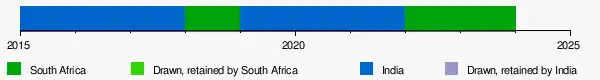 Prior to the trophy's inception, India and South Africa had played eleven series, six in South Africa and five in India. The overall record was six South African victories, two Indian victories, and three drawn series.[4][5]