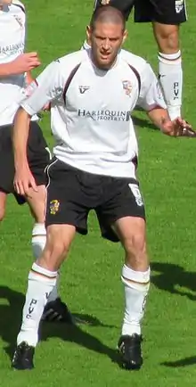 A defender, he represented Wales at under-19 level.[3] He began his career at Stoke City, signing as a professional in August 2001. He made his first team debut in the 2003–04 season, also spending time on loan at Oldham Athletic. He spent part of 2004–05 on loan at Torquay United, before returning on loan at Oldham. His loan deal was made permanent in the summer for a £50,000 fee, though he did not find success in the 2005–06 campaign. He spent the 2006–07 season on loan at Stockport County, and was voted the club's Player of the Season, after which he joined Stockport permanently, and was installed as club captain. Following a successful 2007–08 season, he joined Yeovil Town on loan in October 2008, having fallen out with the management at Stockport. He then joined Port Vale on a loan deal that was made permanent in January 2009. He was a key member of the first team in 2009–10 and 2010–11, and was also appointed as the club's reserve team manager for the 2011–12 season. He retired from playing in January 2013, and began coaching at the Stoke City Academy.