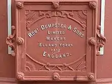 The gas stripping tower is constructed of curved cast components, which fit together to form a slender tower surmounted by a work platform, a water tank disguised as a lantern drum, a cupola and a superimposed weathervane. It stands approximately 21 metres (69 ft) high with a diameter of about 3.5 metres (11 ft). Spare relief work decorates the panels, and an access stair and handrail, braced by decorative cast brackets, accentuates the profile.[1]