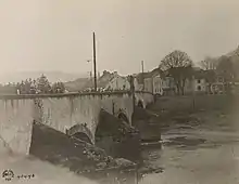 The next day, while French troops were still at a distance from the German frontier, Germany launched a full invasion.[9] German soldiers began moving through south-eastern Luxembourg, crossing the Moselle River at Remich and Wasserbillig, and headed towards the capital, Luxembourg City.[10] Tens of thousands of German soldiers had been deployed to Luxembourg in those 24 hours (although the Grand Duchy's government disputed any precise number that was suggested).[11] Grand Duchess Marie-Adélaïde ordered that the Grand Duchy's small army, which numbered under 400,[12] not resist. On the afternoon of 2 August she and Eyschen met the German commander Oberst Richard Karl von Tessmar on Luxembourg City's Adolphe Bridge, the symbol of Luxembourg's modernisation.[13] They protested mildly, but both the young Grand Duchess and her aging statesman accepted German military rule as inevitable.[14]