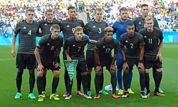 - ↑ In Germany, the team is typically referred to as Die Nationalmannschaft (the national team), DFB-Elf (DFB eleven), DFB-Auswahl (DFB selection) or Nationalelf (national eleven). Whereas in foreign media, they are regularly described as (Die) Mannschaft (literally meaning the team).