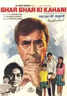 Ghar Ghar Ki Kahani (transl.The story of every home) is a 1970 Hindi-language drama film directed by T. Prakash Rao.[1] The film stars Balraj Sahni, Nirupa Roy and Om Prakash in lead roles, supported by Rakesh Roshan, Bharathi, Shashikala and others.The remake and adaptation rights of this film are now owned by Glamour Eyes Films.