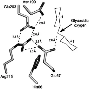 - ↑ Davies G, Henrissat B (September 1995). "Structures and mechanisms of glycosyl hydrolases". Structure. 3 (9): 853–9. doi:10.1016/S0969-2126(01)00220-9. PMID 8535779.