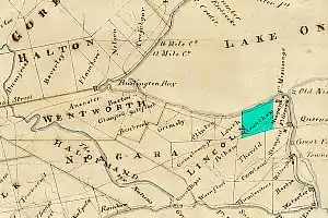 - ↑ Cf. detailed 1876 map of Grantham Township, Illustrated Historical Atlas of the counties of Lincoln and Welland, Ont. (Toronto : H.R. Page & Co., 1876).