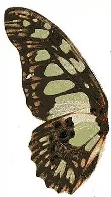 It is a member of the tynderaeus -clade (Graphium tynderaeus, Graphium philonoe, Graphium latreillianus).