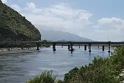 Cobden Bridge over the Grey River near its mouth at Greymouth